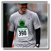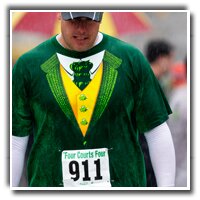 Challenge our Pacers leprechaun, Ireland?s native son Robbie Wade, to a showdown on Wilson Boulevard. He?ll start behind you and will do his best to run you down. If you beat Robbie you?ll win a cool prize. If Robbie beats you, well he?ll probably play a few tricks on you until you buy him a Guinness (and we?ll donate a dollar for each leaped runner to the Arlington County Police Benevolent Fund).