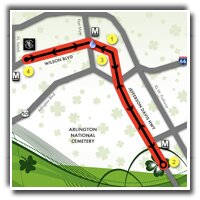 USATF-certified course runs along Wilson Boulevard and Route 110 starting and ending at Ireland's Four Courts. Downhill on first half, uphill on second half. Don't say we didn't warn you.